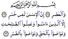 "I swear by the declining day, that man is a certain loser, save those who have faith and do righteous deeds and counsel one another to follow the truth and counsel one another to be steadfast."