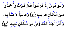 "But then there will be no escape [for them], and they will be seized from a position [quite] near. And they will say, "We do believe [now] in the [Truth]"; but how could they receive [faith] from a position [so far off.].”