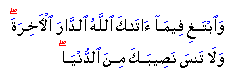 "But seek, with that which God has given you, the home of the Hereafter, and forget not your portion of the present world ..."