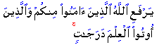 Allah will raise up in degrees those of you who believe and those who have been granted knowledge.