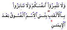 "Neither defame one another, nor insult one another by nicknames. Bad is the name of lewdness after faith. And whoever does not repent, such are evil-doers."