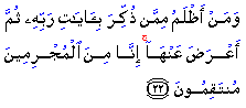 "And who is more unjust than he who is given good counsel through the Signs of his Lord and yet he turns away from them? Surely we will exact full retribution from such criminals."