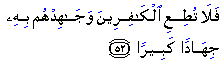 "Do not obey the unbelievers, but strive most vigorously against them with this Quran."