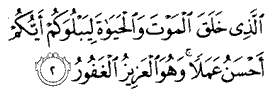 "[He] who created death and life that He may try you to see which of you is best in deeds, and He is All-Mighty as well as All-Forgiving."